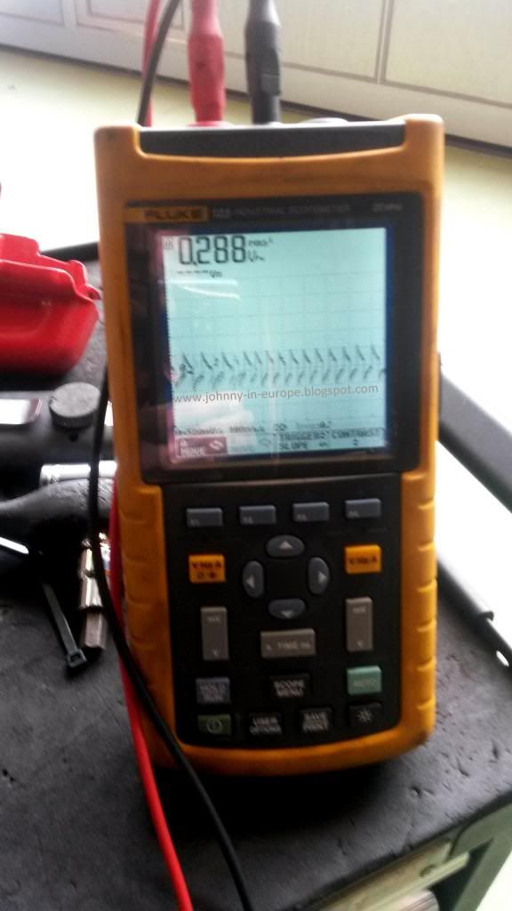 Takaisin pajalle miettimään lisää vaihtoehtoja. Otimme flukella mittauksia. Vähän reilua kymmentä volttia se antoi ja mittasimme samalla myös voimansiirron. Ei kummassakaan mitään vikaa.