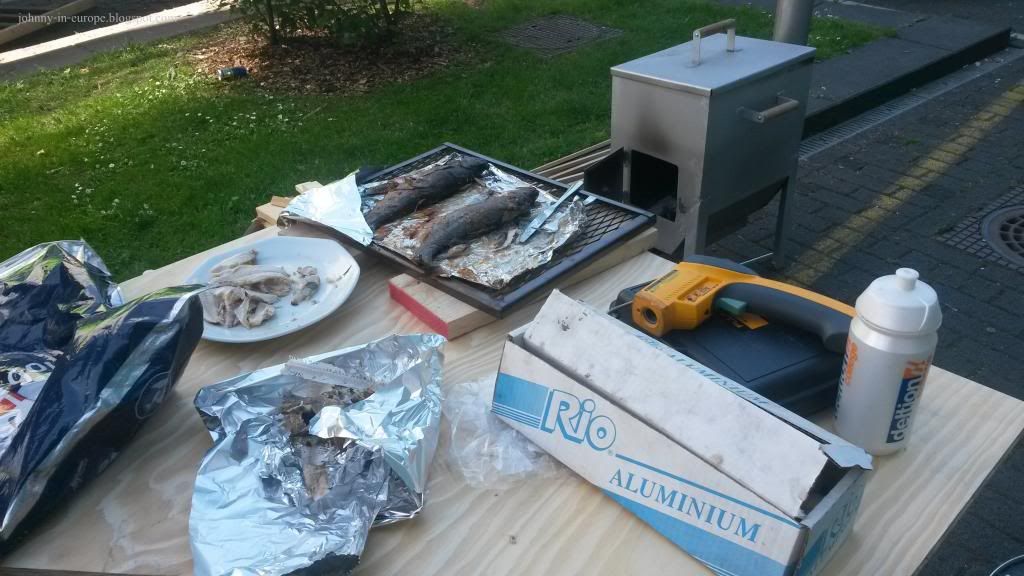Tulihan sitä muuten eilen savustettua kalaakin siellä tiimin takapihalla. Kokeiltiin yhden maikan oma tekemää savustuspönttöä ja hyvin näytti toimivan. Savustettiin hollantilaista kalaa. Oli aivan törkeän hyvää! Kunnon hakkeet ja yrtit seassa, niin kyllä vei kielen mennessään.
